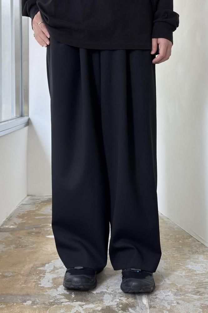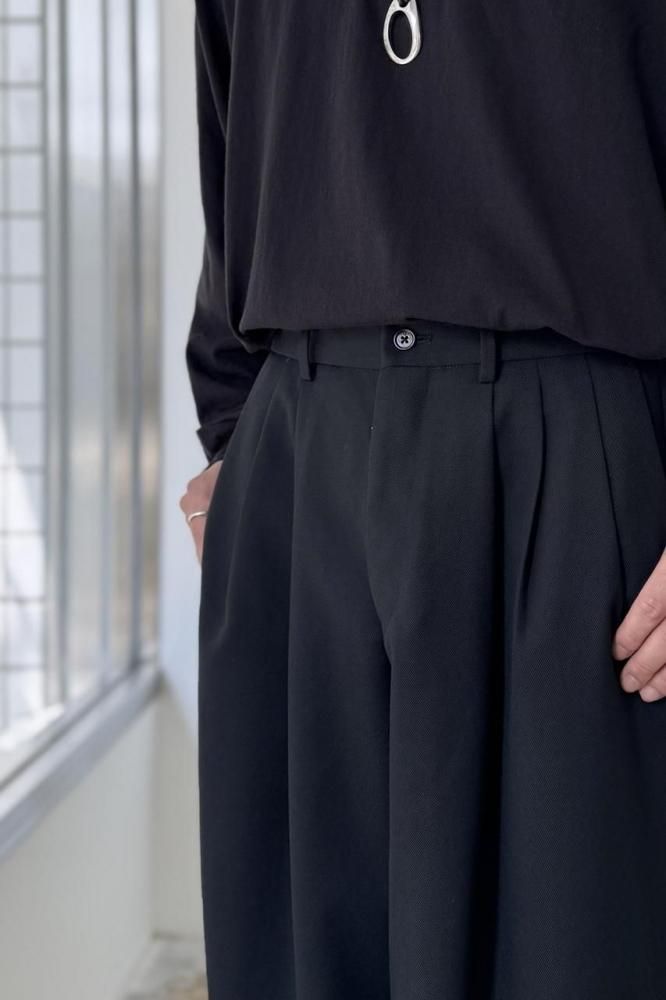 ORGANIC WOOL SURVIVAL CLOTH TRIPLE PLEATED WIDE TROUSERS(BLACK)