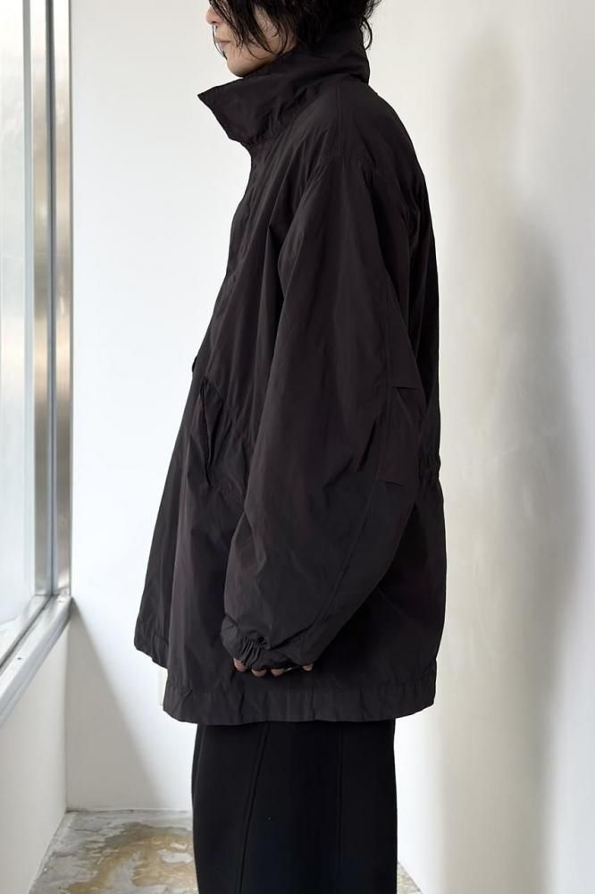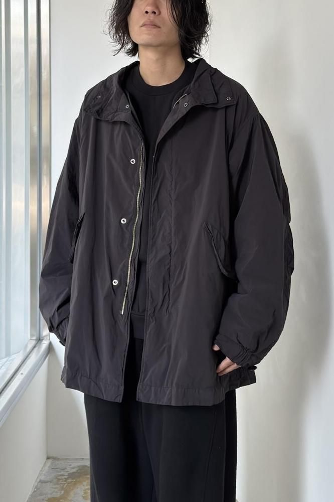 フロントはドットボタンとジッパーの双方で開閉可能で、表地内側にはドローコードが配されており着こなしのアレンジも楽しめます。