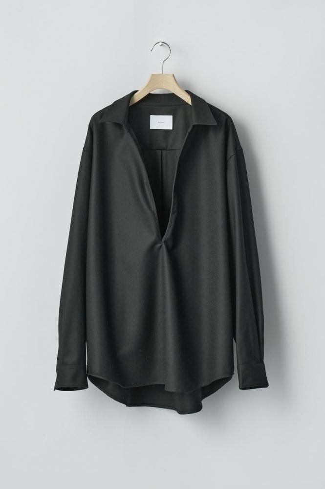 WOOL FLANNEL OVERSIZED SKIPPER SHIRT(BLACK)
