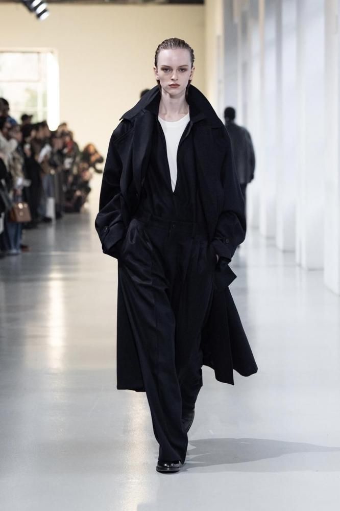総じてミニマルに仕上げつつ、ゆとりあるシルエットと相まってドレープが綺麗に出るよう、各パターンを調整して製作。