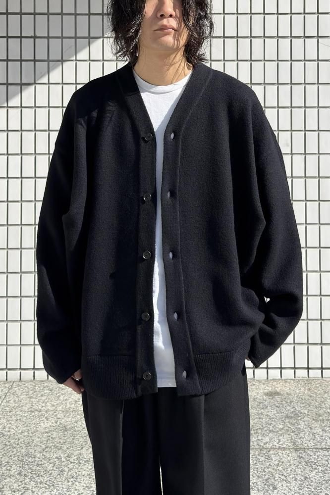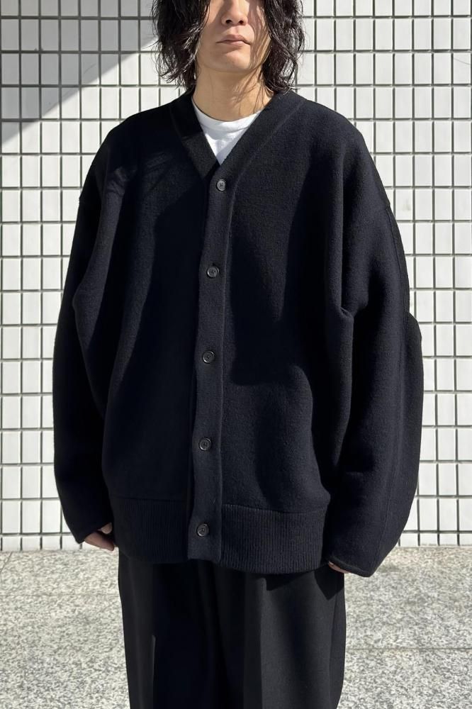 EXTRA FINE WOOL KNIT TUCKED CARDIGAN(BLACK)