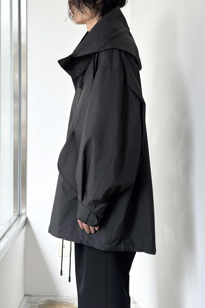 またフードの背中心側のコードを絞ることで、トップをすっきりとコンパクトにアレンジ可能です。