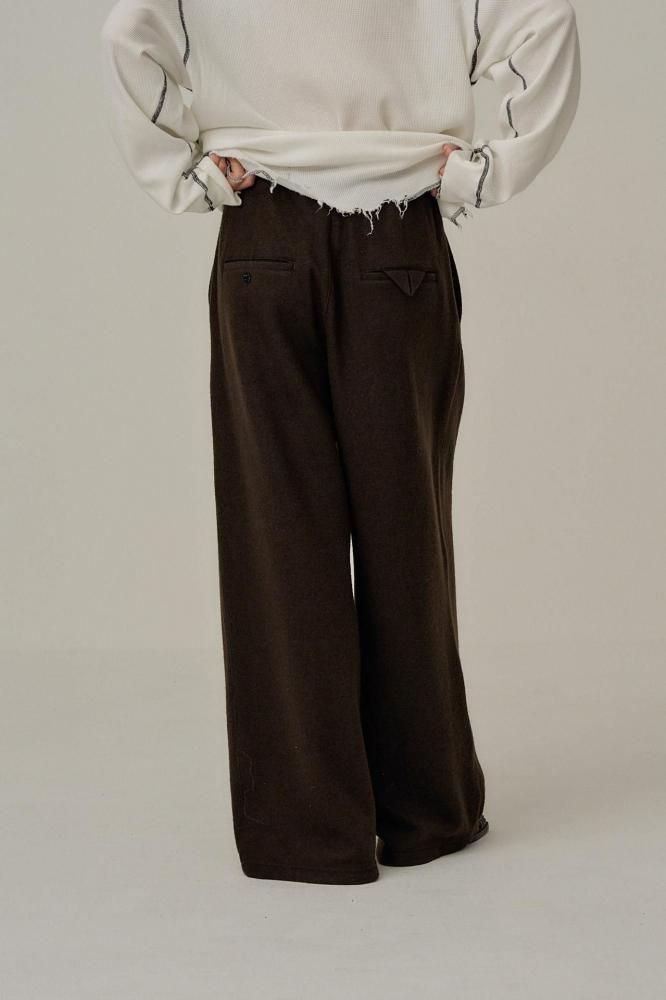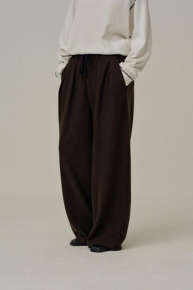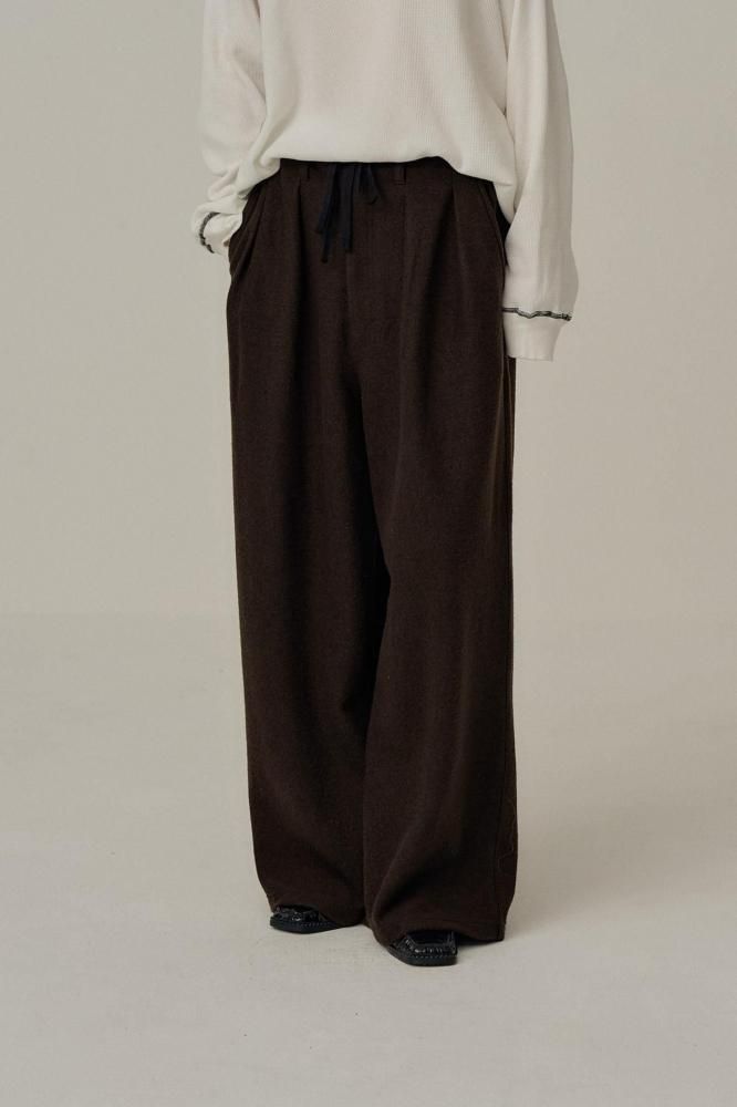 WOOL WIDE EASY TUCK SLACKS(DARK BROWN)