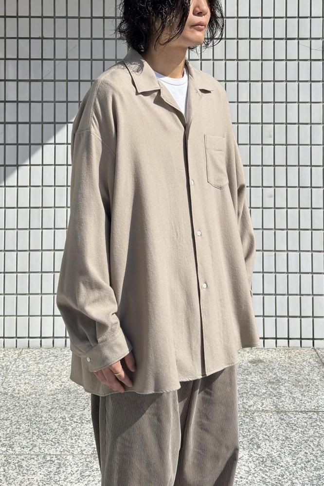 心地よい風合いのオープンカラーシャツ。