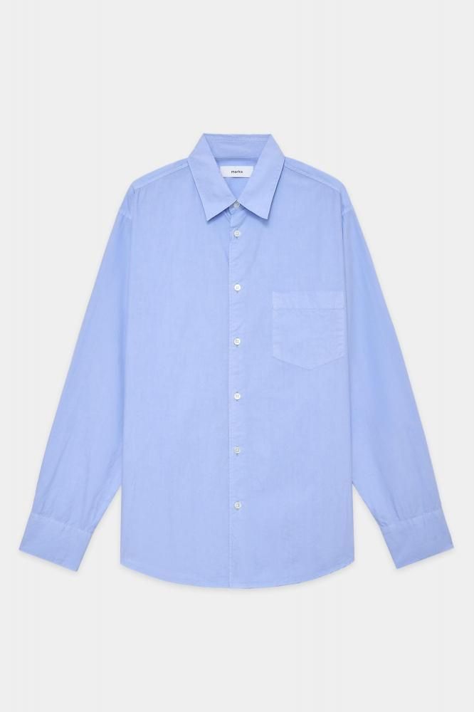 REGULAR COLLAR SHIRT -ORGANIC COTTON SILK TYPEWRITER CLOTH-(SAXE)