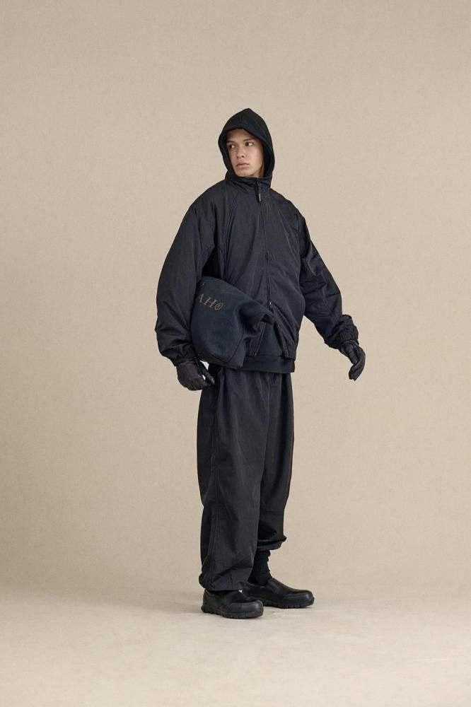 パイピングデザインが特徴のナイロンジョガーパンツ。