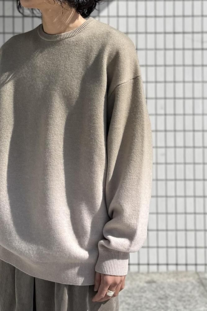 ボディには上質で膨らみのある紡毛糸でミドルゲージに編み上げたニット素材を使用。