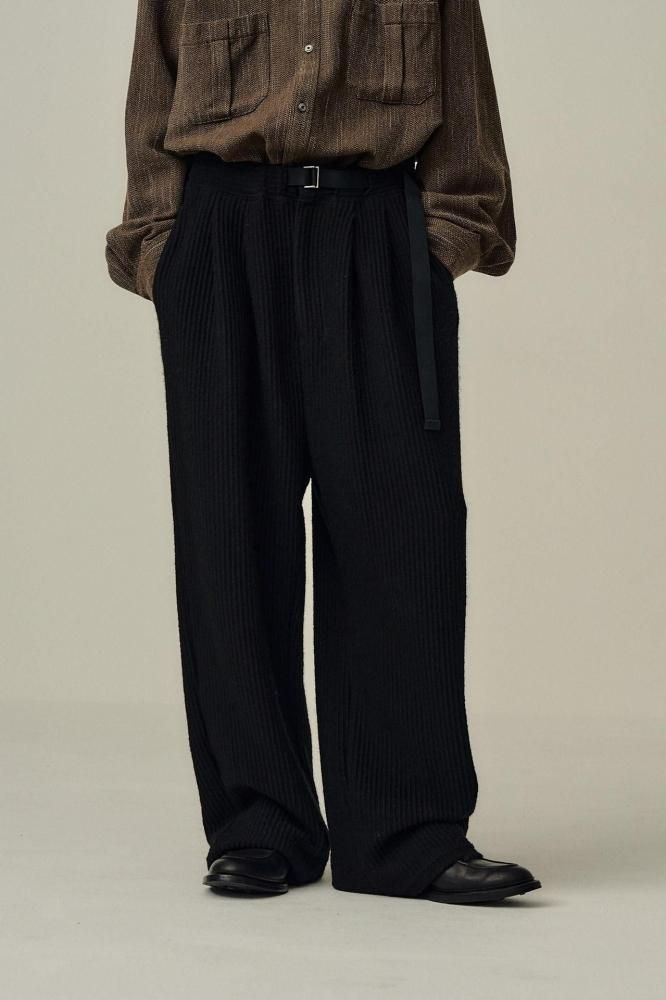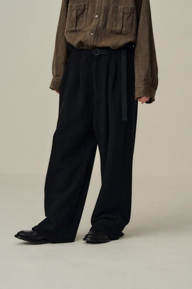 WOOLCORD BELTLESS SLACKS(BLACK)