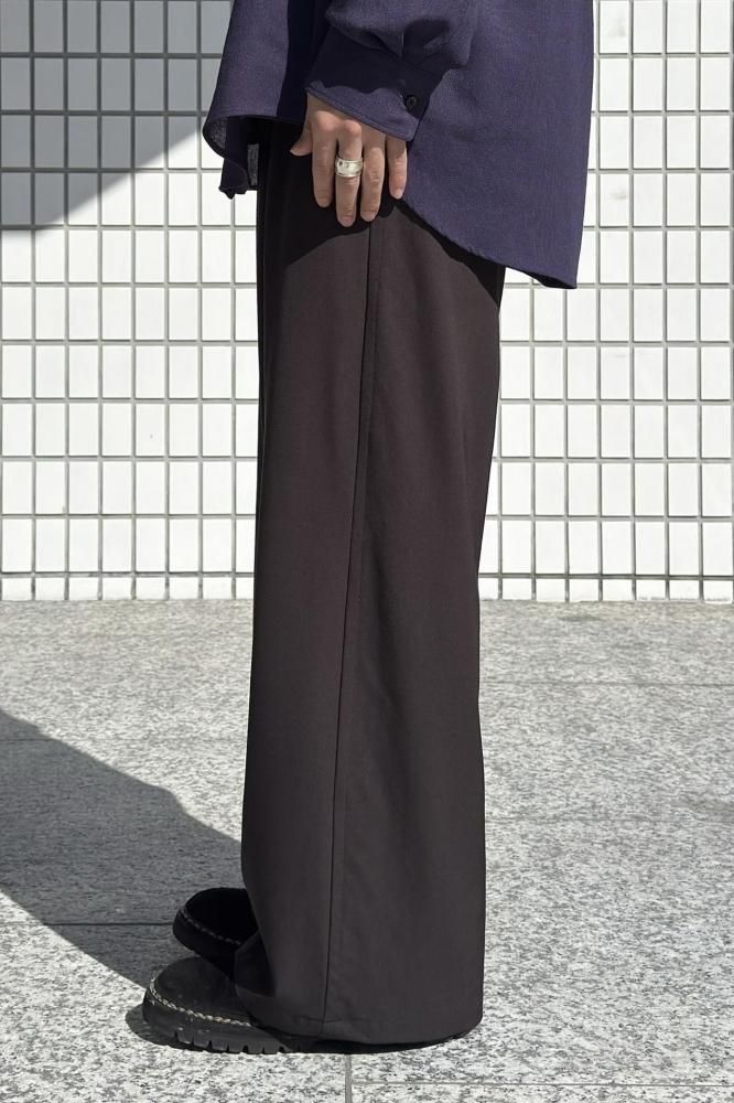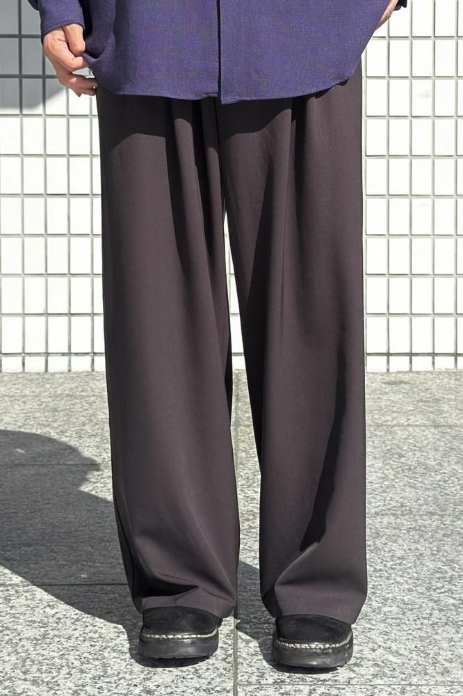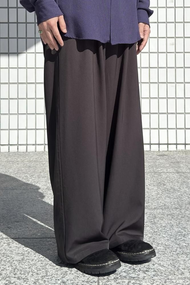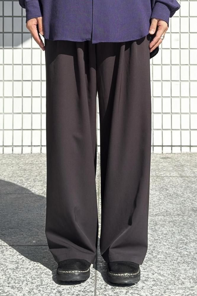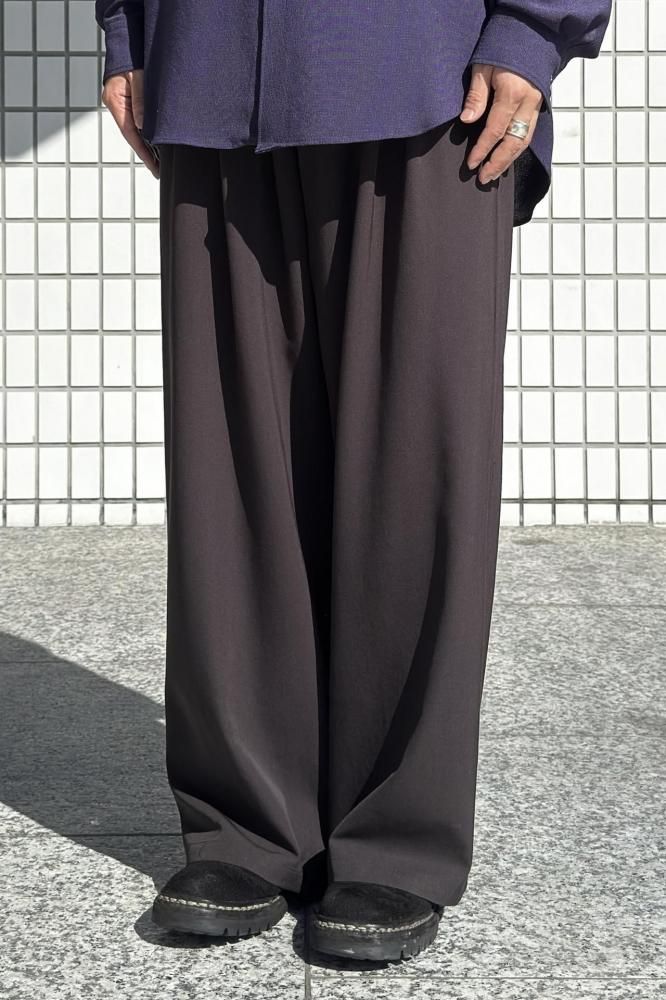 Wool Washer Twill 2pleated Wide-leg Easy Trousers(BROWN)