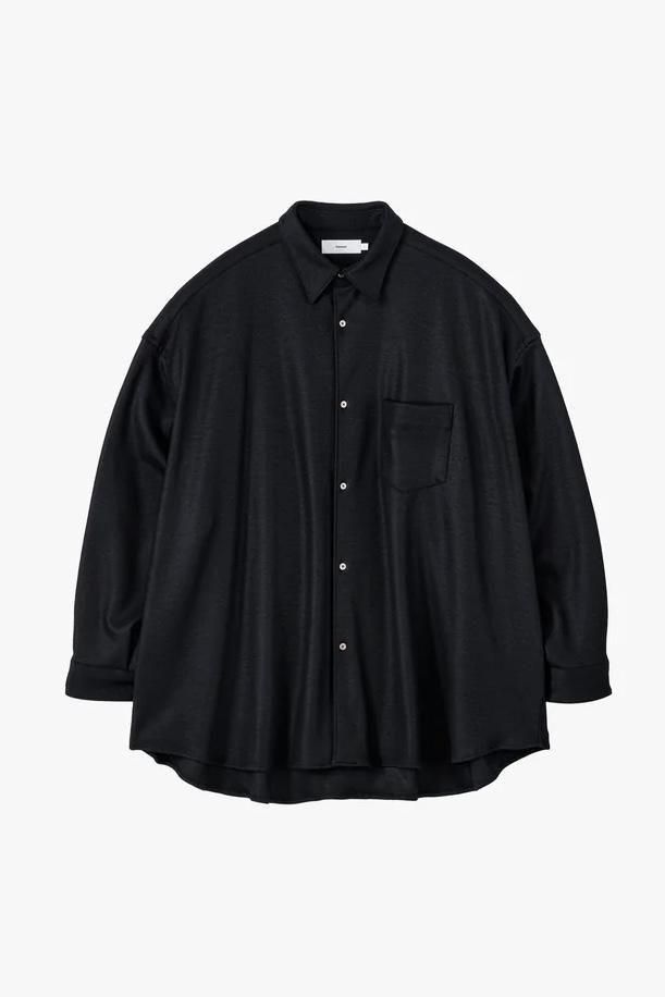 Wool Smooth Flannel Oversized Regular Collar Shirt(BLACK)