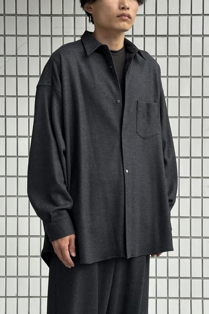 Wool Smooth Flannel Oversized Regular Collar Shirt(GRAY)