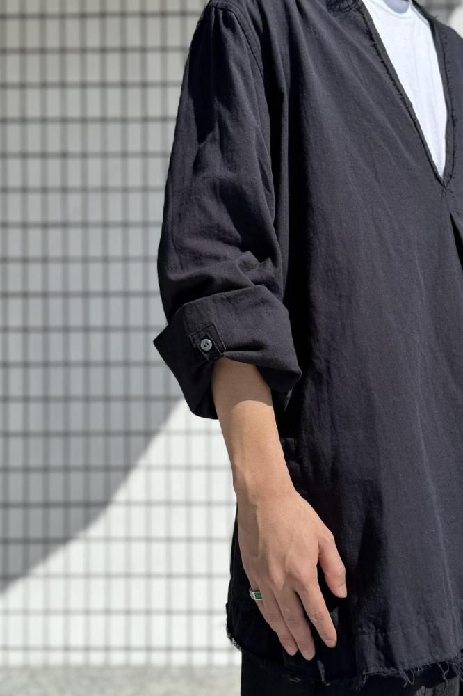 要所のカットオフが目を惹くプルオーバーシャツ。