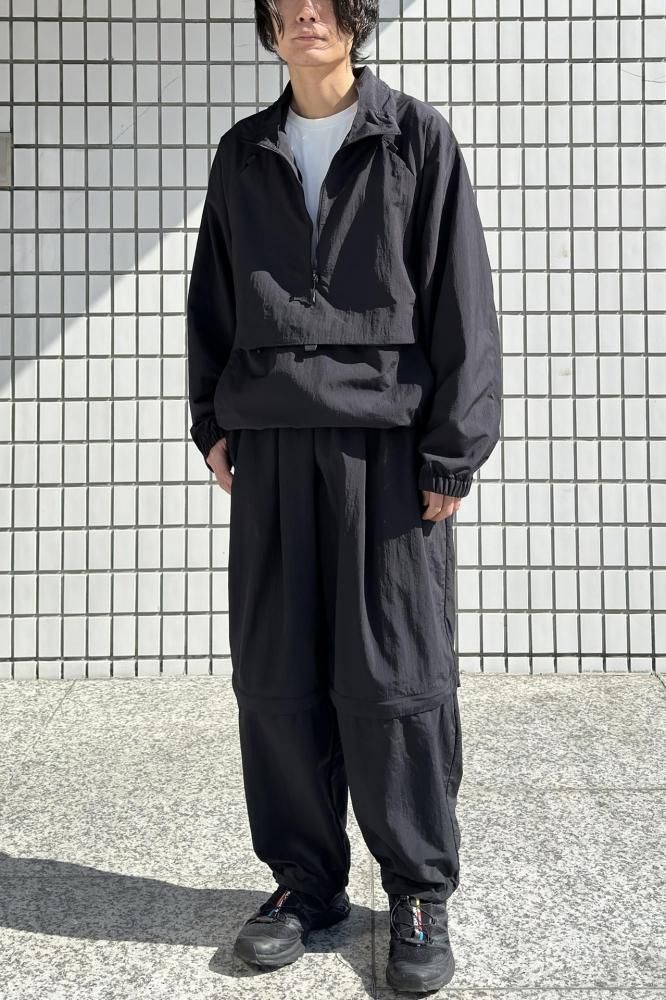 単品での着用はもちろん、共生地のブルゾンとのセットアップスタイルもオススメ。