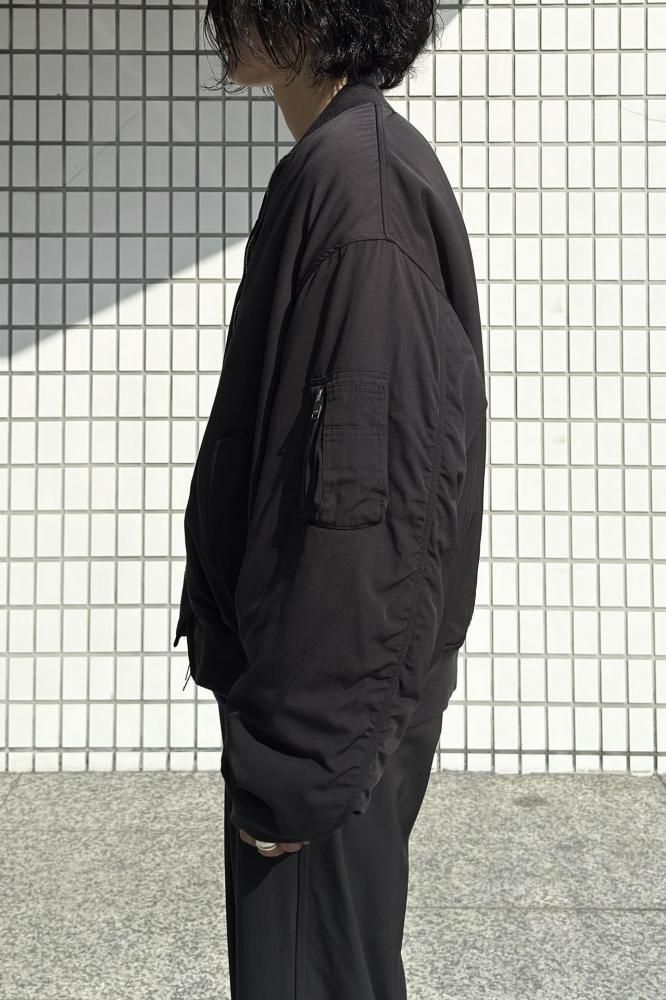 フライトジャケット型を採用しつつ、肩や外袖ハギ、サイドにはコットンのテープを流し込み、独自のニュアンスを加えたデザイン。