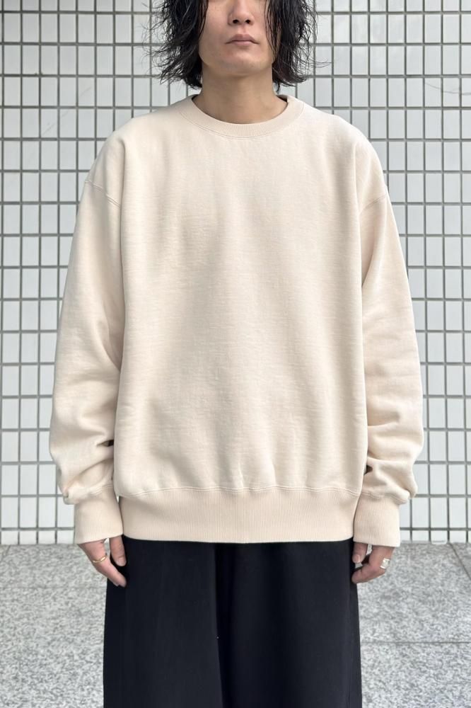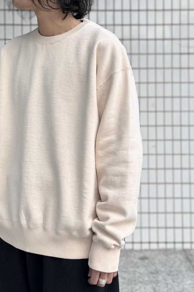ボディには希少な旧式吊り編み機を用い、時間をかけてゆっくりと編み上げたスウェット素材を使用。