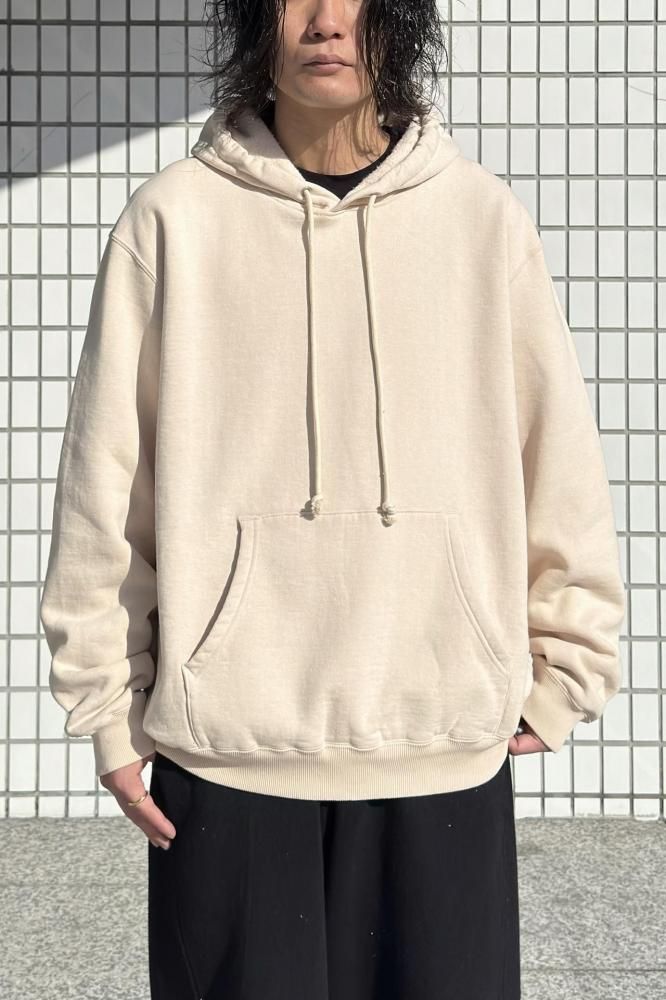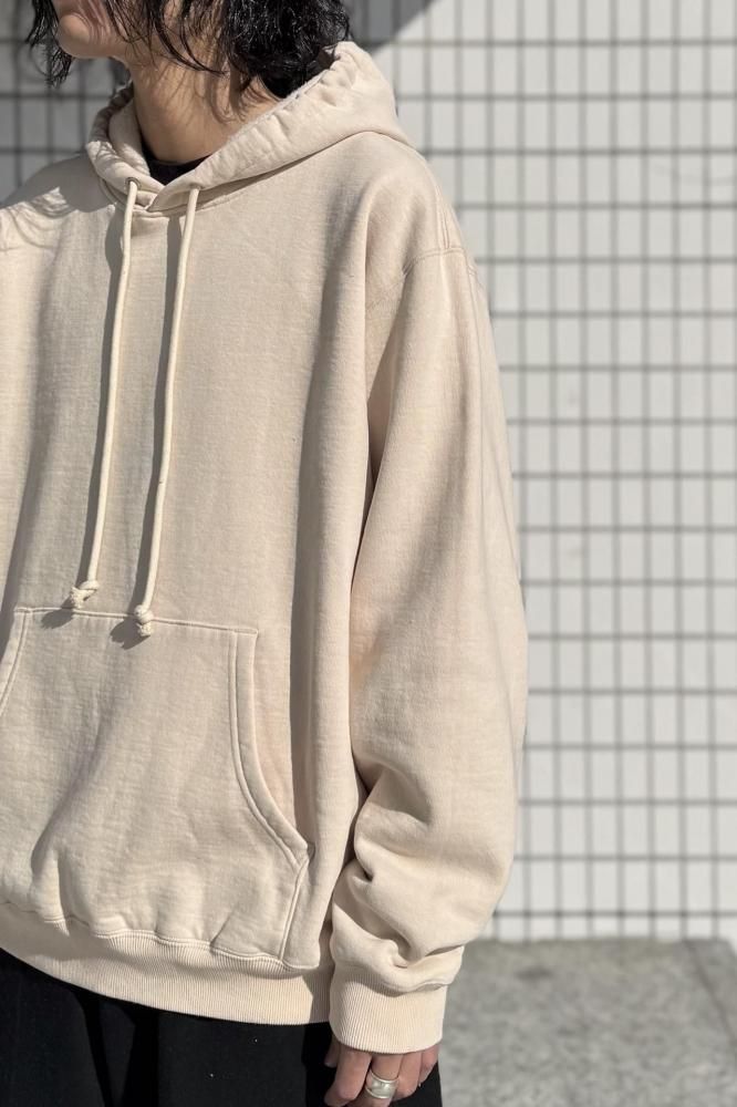 ボディには希少な旧式吊り編み機を用い、時間をかけてゆっくりと編み上げたスウェット素材を使用。
