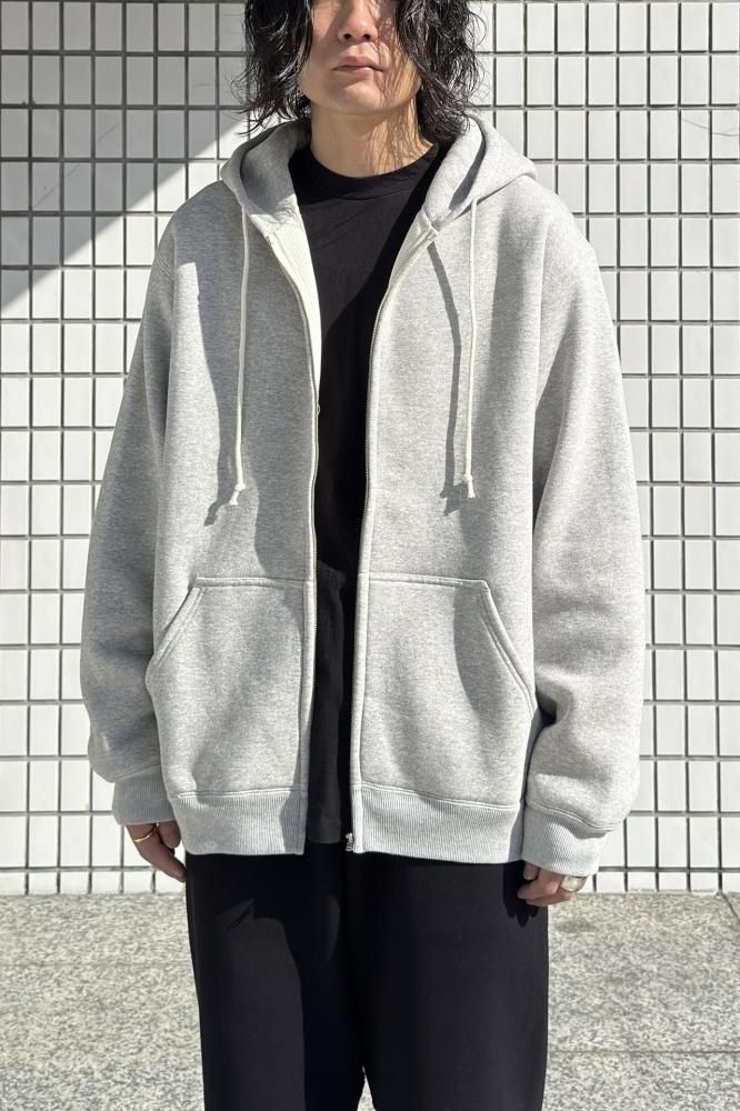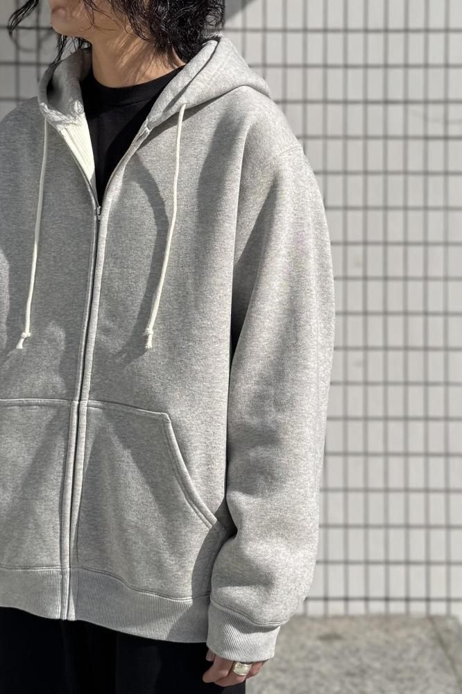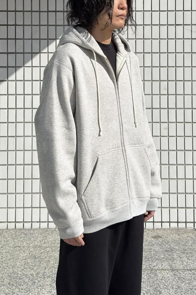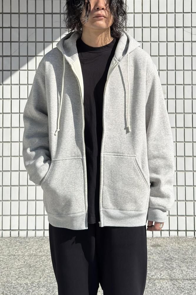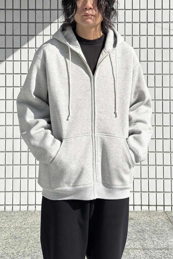 シンプルかつミニマルなサーマル付ジップパーカ。