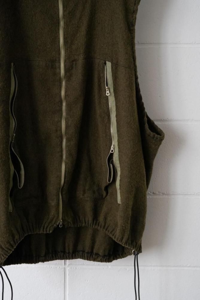 スタンドカラーのダブルジップ仕様のデザインで、アームホールにもゆとりをもたせた仕様。