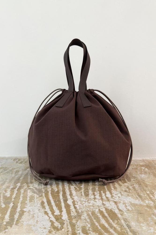 袋口を開閉する紐を長めに設定することで、ワンショルダーでの肩掛けも可能。